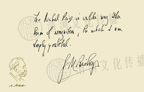 译文:诺贝尔奖不同于其他任何形式的认可,我能获此殊荣深表感激。