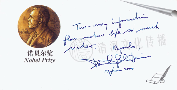 译文:中国重视诺贝尔奖真是件大好事。诺贝尔奖代表了科学发展所取得的成就,我希望中国青年科学家的有志者事竟成。