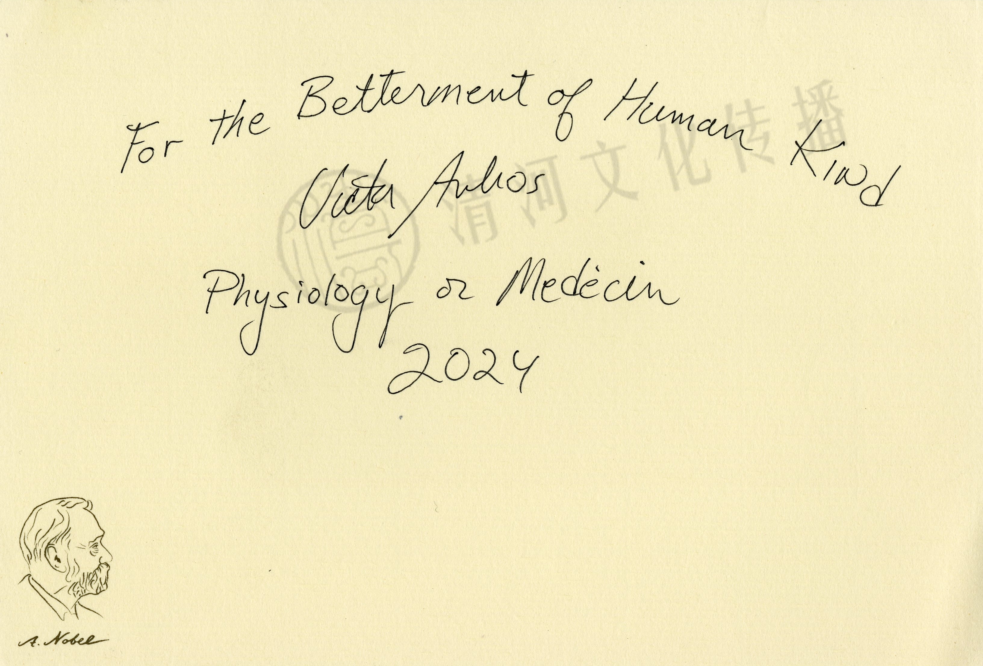 表彰其发现了微小核糖核酸及其在转录后基因调控中的作用。