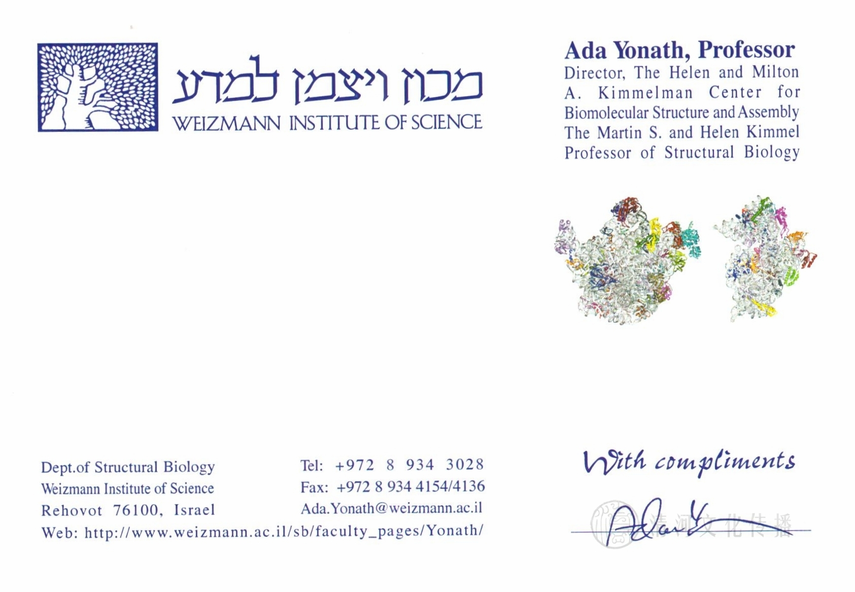 2009年 约纳特 Ada E. Yonath (1939- )