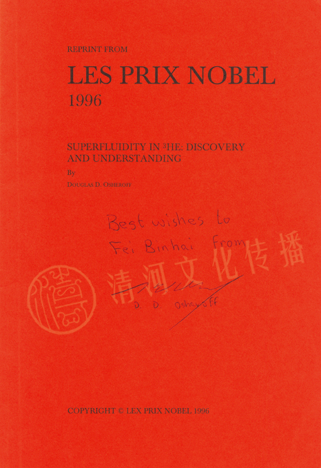 表彰其发现在低温状态下无摩擦流动的氦同位素氦-3的超流性。