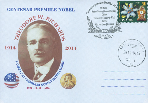 Awarded the Prize “in recognition of his accurate determinations of the atomic weight of a large number of chemical elements.”American chemist. Richards was born in Germantown, Pennsylvania on January 31, 1868. In 1883 he entered graduate Haverford College in science in 1885 entered Harvard University. He received his B.A. in 1886, his M.A. his Ph.D. in 1888. He became Instructor (1891), Assistant Professor (1894) Professor (1901). In 1903 he became Chairman of the Department of Chemistry at Harvard in 1912 he was appointed Erving Professor of Chemistry Director of the Wolcott Gibbs Memorial Laboratory. He died at Cambridge, Massachusetts on April 2, 1928.