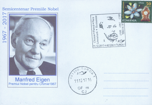 Awarded the Prize “for his studies of extremely fast chemical reactions, effected by disturbing the equlibrium by means of very short pulses of energy.”German physical chemist. Eigen was born at Bochum in Germany educated at the University of Göttingen where he obtained his Ph.D. in 1951. He joined the staff of the Max Planck Institute for Physical Chemistry at Gottingen in 1953 has served as its Director since 1964. Manfred Eigen died on February 6, 2019 in Göttingen, Germany.