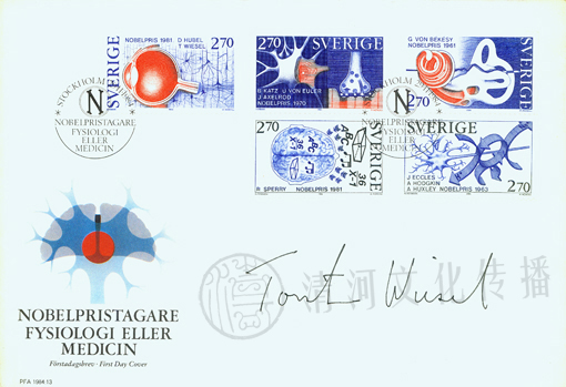 Awarded the Prize “for discoveries concerning information processing in the visual system.”American neurobiologist. Wiesel was born on June 3, 1924 at Uppsala, Sweden. He received his M.D. from the Karolinska Institute in Stockholm in 1954. Then he went to the Johns Hopkins University Medical School in 1955. In 1959 he joined Harvard Medical School, becoming head of the Department of Neurobiology in 1973. In 1983, he moved to the Rockefeller University as Vincent Brook Astor Professor, establishing a new Laboratory of Neurobiology. In 1991, he became president of Rockefeller. Since 1994, he has served as chairman of the National Academy of Science’s Committee on Human Rights. In 1995 he became chairman of the board of the Aaron Diamond AIDS Research Center.
