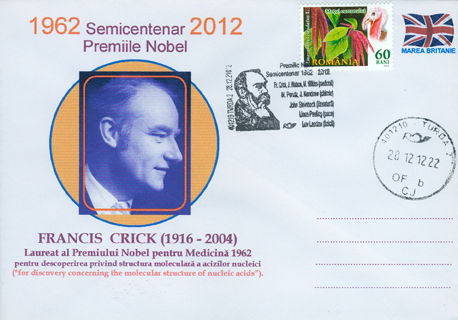 Awarded the Prize “for the discoveries concerning the molecular structure of nucleic acids its significance for information transfer in living material.”British biophysicist. Crick was born on June 8, 1916 at Northampton, Engl. He obtained his B.Sc. in 1937 at University College, London Ph.D. in 1954 at Caius College, Cambridge. He worked at the Cavendish Laboratory the Protein Structure Project of the Brooklyn Polytechnic in Brooklyn, New York was a Visiting Professor at Harvard. He was a Fellow of the Royal Society. Crick died on July 28, 2004, in San Diego, California.